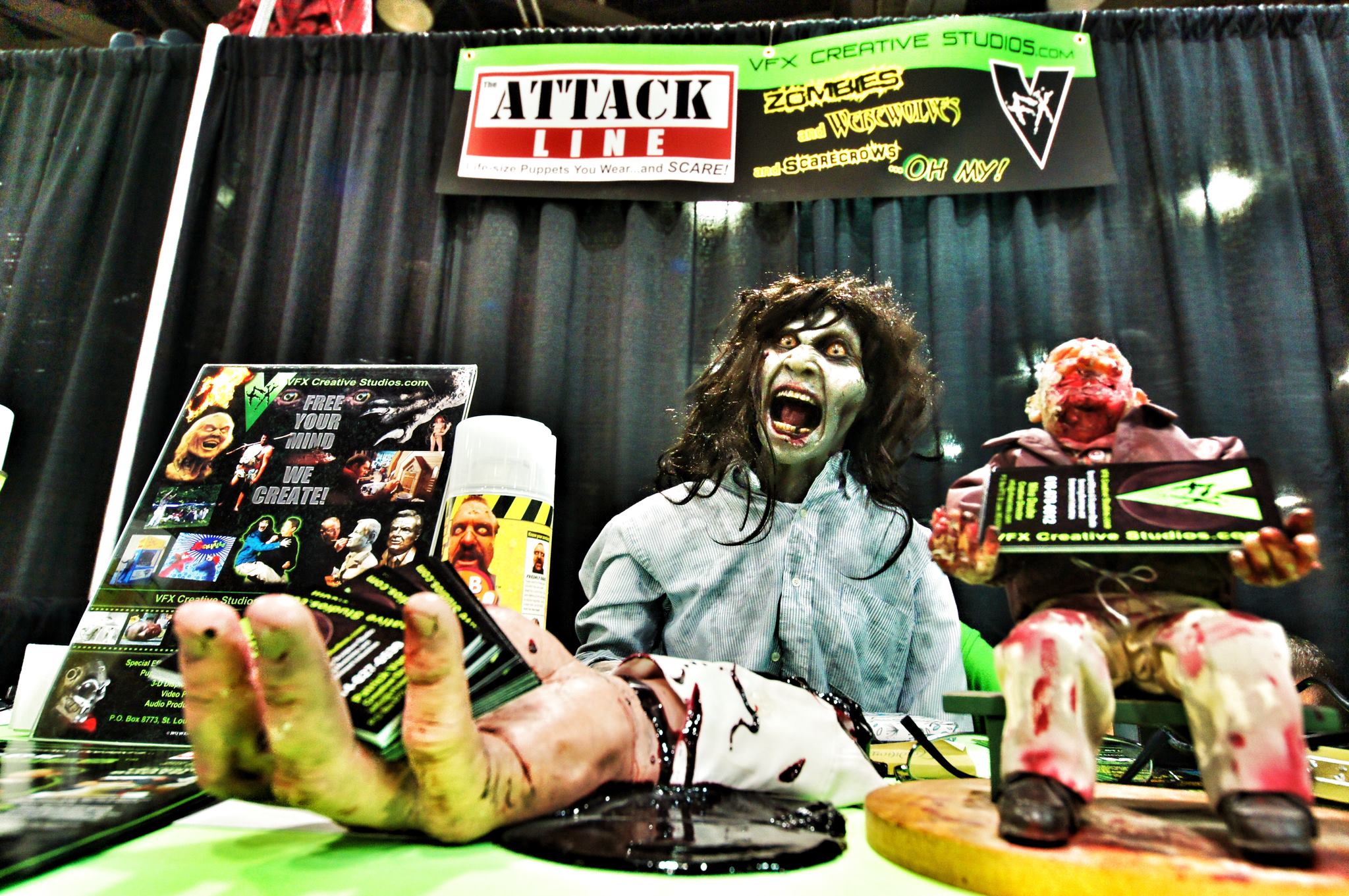 VFX Creative Studios is happy to present our Attack Line of realistic puppets that you wear to scare! The Attack Zombie was the first of the Attack Line family and it is near and dear to our hearts here at VFX. We have expanded our line to include Scarecrows, Werewolves, Clowns, Mummies and more -- but where would the haunt industry be today if it wasn't for our love of all things undead? The Attack Zombie, like all of our Attack Line, is a puppet designed to be extremely comfortable and lightweight (Weighs around 8 lbs.) so that our customers can wear them for extended periods of time if they need to without feeling additional fatigue.