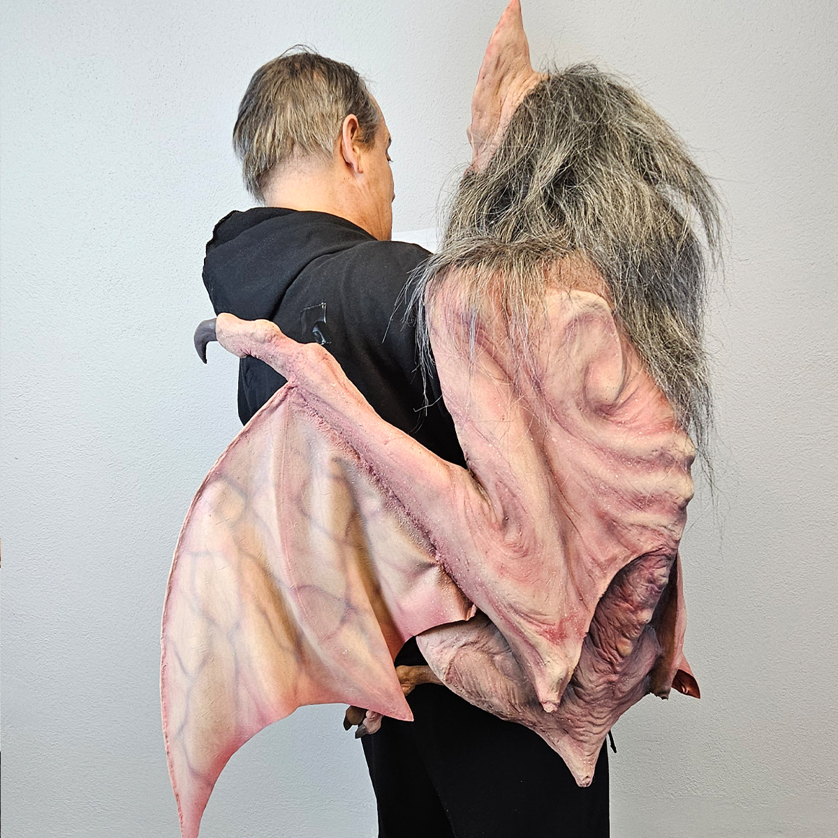 I just received my Desmodus Vampire Bat with the period jacket!!! IT IS AMAZING!! The videos and pics dont do it justice. This is a legacy costume that can be used year after year. Robust, yet light-weight. IT IS A SHOW STOPPER AND A HEAD TURNER! This costume isnt only good for commercial haunts, it is perfect for personal uae as well! I plan on purchasing other models as well. I highly recommend the quality of VFX Creates, and the Desmodus Vampire Bat! Thanks Patrick and VFX Creates!!!